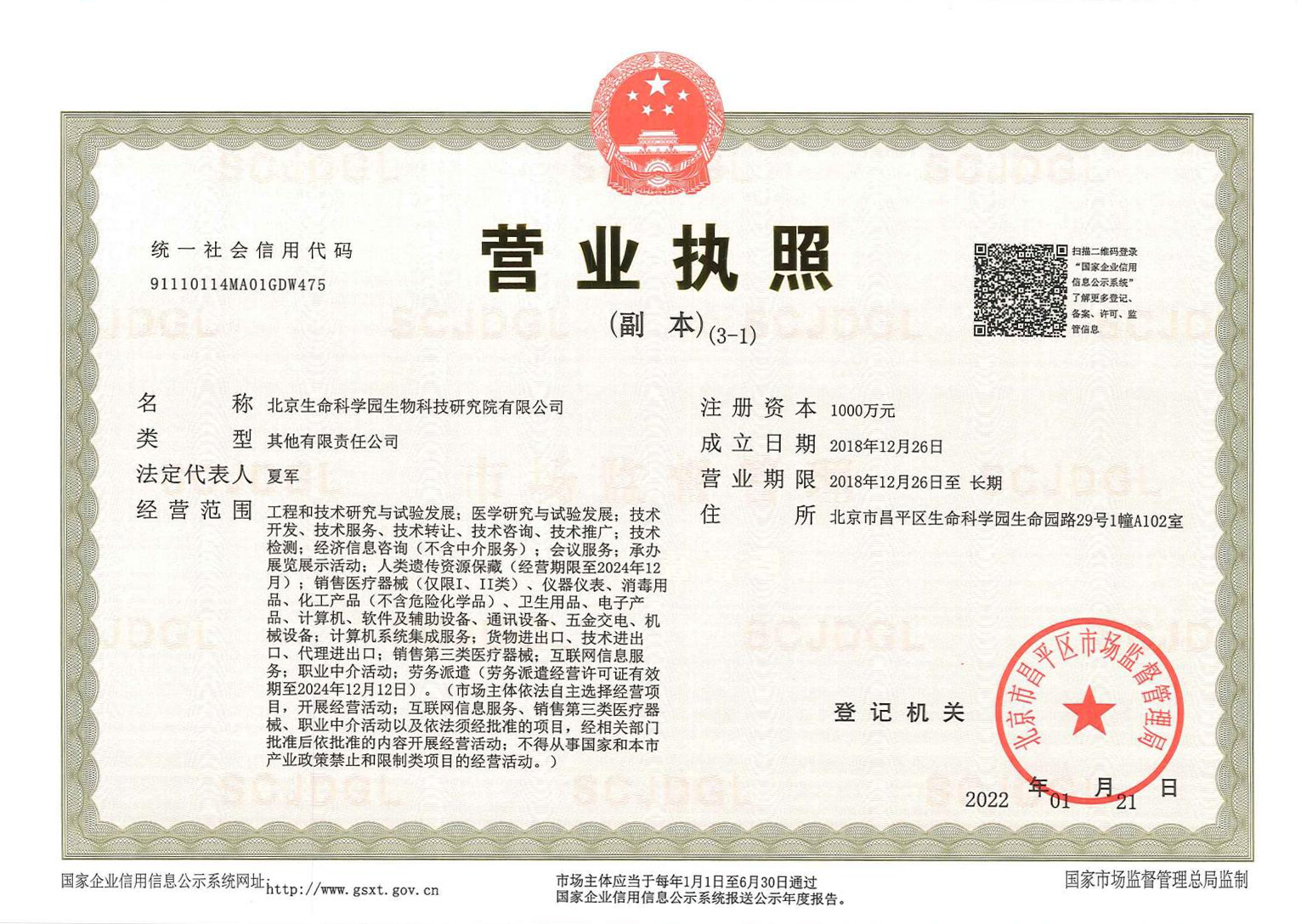 北京生命科學(xué)園生物科技研究院(以下簡稱“北京生物樣本資源庫”)(Biobank of Life Science Park,簡寫“BoLSP”)是一家由北京市科委和中關(guān)村生命科學(xué)園共同支持設(shè)立的第三方生物樣本庫公共服務(wù)平臺,秉承北京重大疾病臨床數(shù)據(jù)和樣本資源庫(以下簡稱“北京庫”)(Beijing Biobank of Clinical Resources,BBCR)十余年的發(fā)展成果,聚合眾多臨床樣本專家的專業(yè)共識,致力于在生命科學(xué)、生物醫(yī)藥研究領(lǐng)域發(fā)揮銜接樣本資源持有者與研究者的橋梁作用,解決生物樣本資源開發(fā)上下游信息不對稱、資源共享困難等問題。研究院在北京中關(guān)村生命科學(xué)園昌平園區(qū)建立了2000㎡生物樣本庫,最大存儲規(guī)模達1000萬份。研究院遵循CNAS-CL10:2020《生物樣本庫質(zhì)量和能力認可準則》,同時結(jié)合北京庫過去十年的工作經(jīng)驗與教訓(xùn),建立了一套完善的生物樣本保藏質(zhì)量管理體系,從人、機、料、法、環(huán)、控多個角度,實現(xiàn)生物樣本保藏過程的全面質(zhì)量控制,先后獲得國家科技部頒發(fā)的人類遺傳資源保藏行政許可證書和中國合格評定國家認可委員會(China National Accreditation Service for Conformity Assessment,CNAS)頒發(fā)的“CNAS認可證書”。